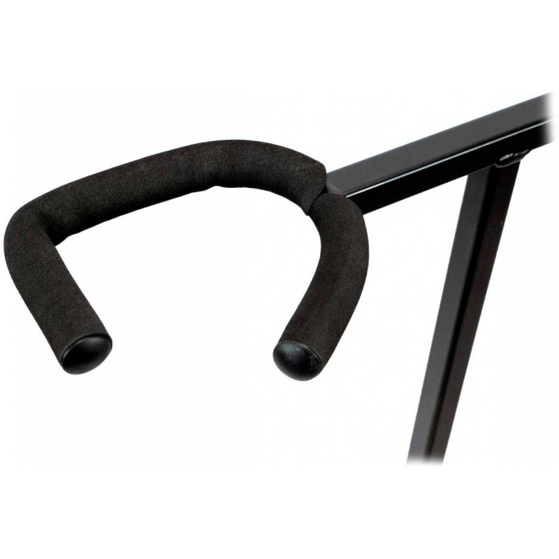 SUPORTE MÚLTIPLO PARA GUITARRA Suporte duplo universal e gancho protetor para baixo/violão elétrico e clássico/acústico. Todas as extremidades são revestidas de borracha para proteger os instrumentos.