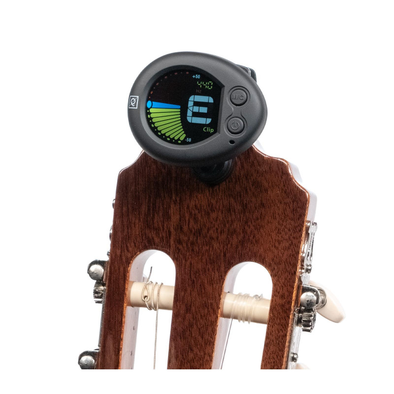 CLIP-ON CHROMATIC TUNER Afinador de metrônomo QCLIP-TM. Modo de afinação: cromático. Calibração A4: 410-490 Hz. Faixa de tempo: 30-280 bpm. Tela LCD colorida.