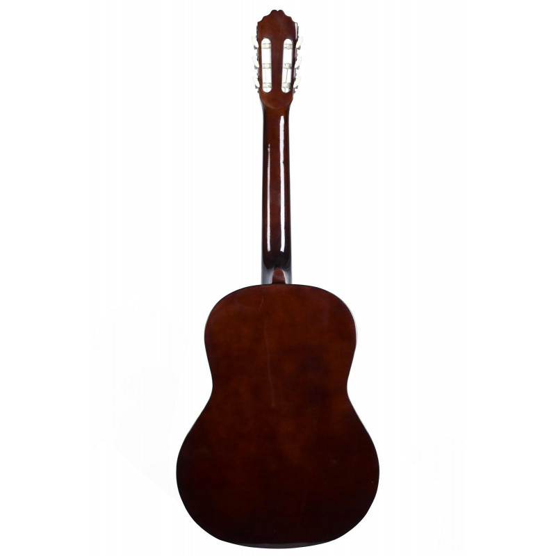 GUITARRA CLÁSSICA 4/4 Guitarra clássica tamanho 4/4 para iniciantes. Pescoço com alma ajustável. Tampo, laterais e fundo em basswood. pescoço de bétula. Escala e ponte em madeira dura. Sintonizadores do Chrome. Capa incluída. Acabamento natural.