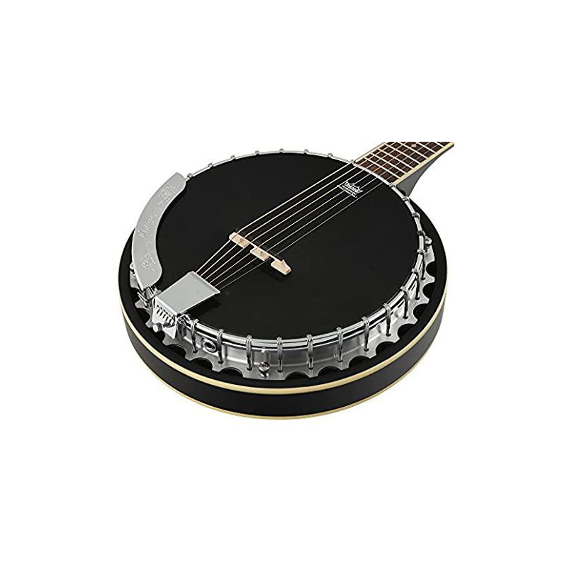 BANJO Banjo eletrificado de 6 cordas. "Banjitar" com cordas e afinação para construção de violão, corpo e banjo. Acabamento em preto fosco. Inclui bainha