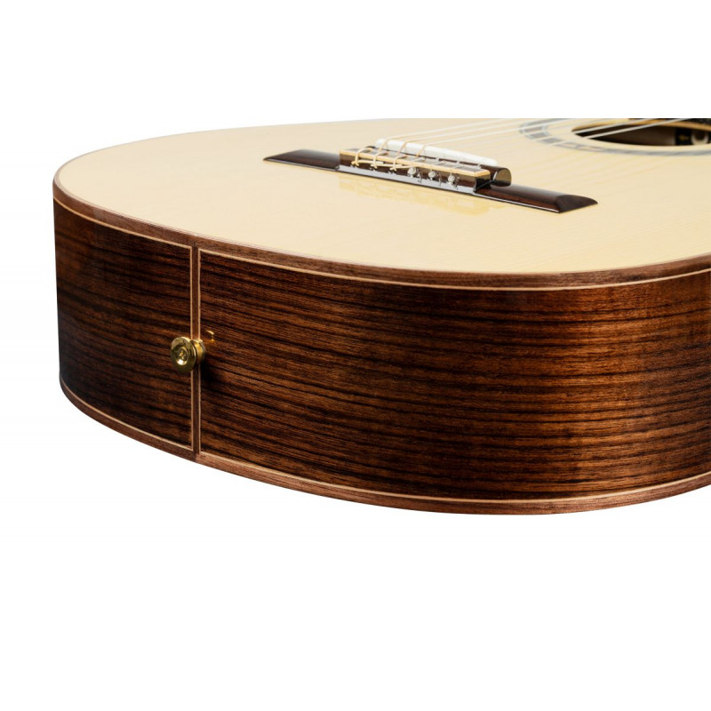 CORDAS DE NYLON PARA GUITARRA ELETROACÚSTICA Os dois novos modelos de topo sólido são uma opção especialmente atraente para tocar violão no palco. Selecione entre cedro norte-americano ou abeto Sitka do Alasca combinado com fundo e laterais de nogueira. Esses modelos proporcionam excelente conforto ao tocar, além de excelente projeção tonal. A luxuosa bolsa de viagem de Ortega é fornecida com cada modelo.