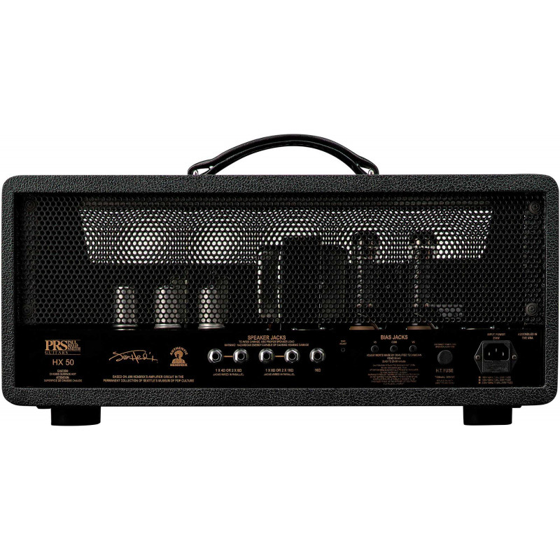 AMP HEAD FOR GUITAR The PRS HX amplifiers capture the flexibility, power, and balance of late 60's British-inspired tone. A continuation of PRS's popular HXDA amplifiers, PRS HX amps feature a refined control layout and a newly-documented “Authentic Hendrix” Touring Circuit. This circuit is heavily inspired by one of Hendrix's personal amps, purportedly used at Woodstock, which Paul Reed Smith and PRS Amp Designer Doug Sewell were able to study in 2018. Made in PRS Guitars Stevensville, Maryland, USA factory, PRS HX amps are an exhaustive recreation of tone, a celebration of history, and a monument to modern technology. 50 Watts / 2x New Sensor EL34EH Power Tubes. Output Transformer: Straight Edge 50w. Output Jack Config: 2x4, 2x8, 1x16 ohm. 2 channels, Lead&Bass, internally bridged, with individual volume control. Flexibility and tone control. Channel 1 Controls: Bass Volume with common Presence. Bass, Middle, Mid Gain (on/off), Treble, Lead Volume, Bright( off, bright 1, bright 2). Channel 2 Controls: Lead Volume with common Presence. Bass, Middle, Mid Gain (on/off), Treble, Bass Volume, Bright( off, bright 1, bright 2). Adjustable bias. Finish: Black Tolex. Note: this is a vintage stock volume amp. PRS recommends using a volume attenuator (Koch Loadbox LB120 II). Every PRS HX amplifier ships with a booklet that details the development story and the features of the HX amp. It covers Paul Reed Smith's inspiration for building the amp, artifacts from one of Jimi Hendrix's personal amps, and more.