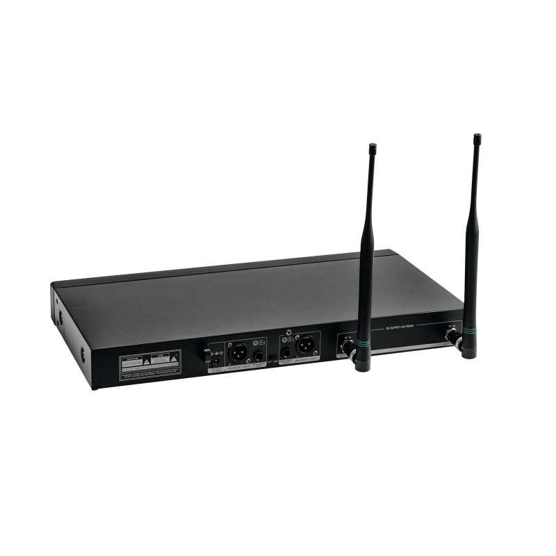 - Transmissores correspondentes disponíveis opcionalmente: microfone de mão (UH-222D) e transmissor de bolso (UT-222)