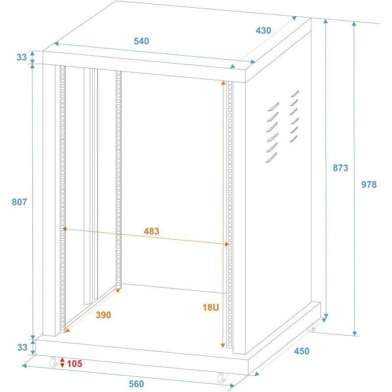 | Altura de montagem: | Aproximadamente. 800 mm (18 U) |