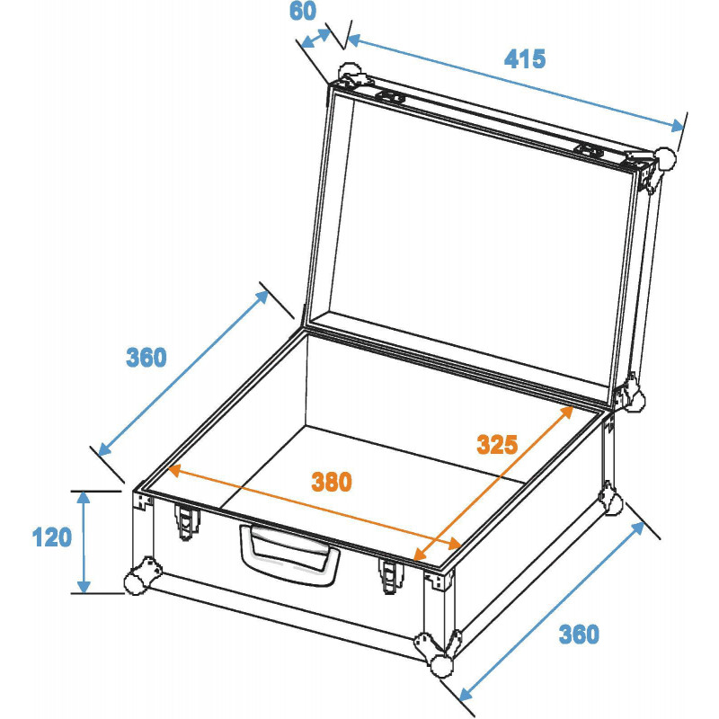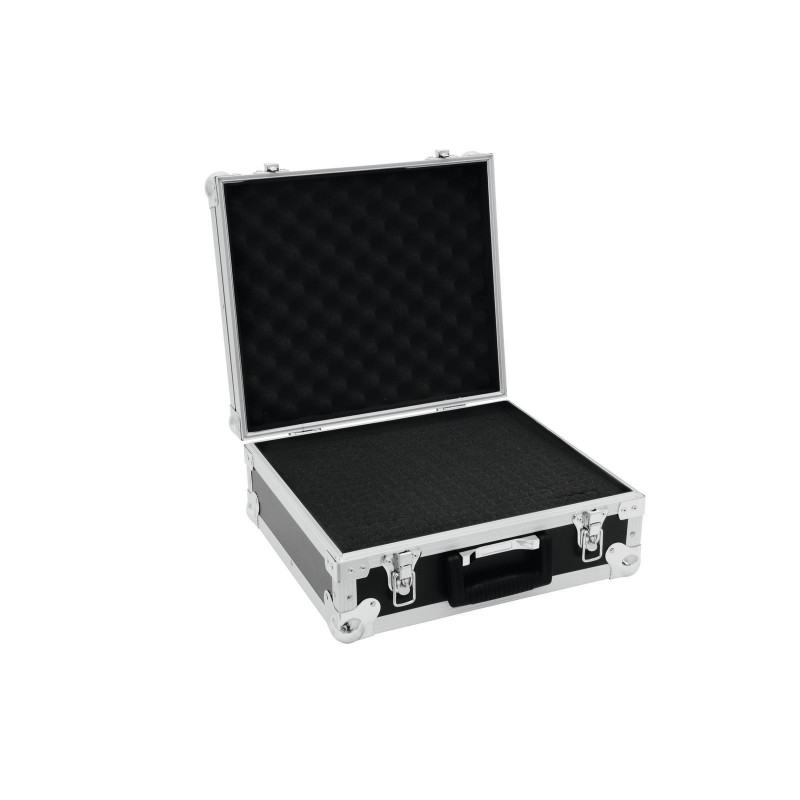 Flightcase com interior acolchoado flexível e 380 x 325 x 110 mm (dimensões internas)