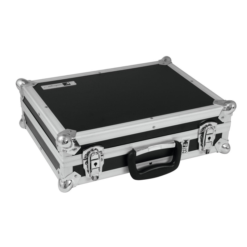 Flightcase com interior acolchoado flexível e 375 x 285 x 70 mm (dimensões internas)