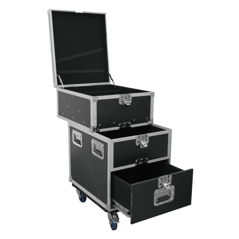 Mostra o que tem! Existem caixas que não podem oferecer nada além de cinco paredes e uma porta. Mas nosso caso universal de roadie é diferente. Além de suas três seções espaçosas - além disso, a seção superior é dividida em três partes - esta beldade tem um destaque especial: todas as três seções podem ser abertas e usadas ao mesmo tempo. No fundo, uma gaveta é puxada para a frente e, no topo, a seção não é puxada para trás. Et voilà! Todos os utensílios armazenados no estojo podem ser usados a qualquer momento. Além disso, itens pesados podem ser colocados na seção central forte.