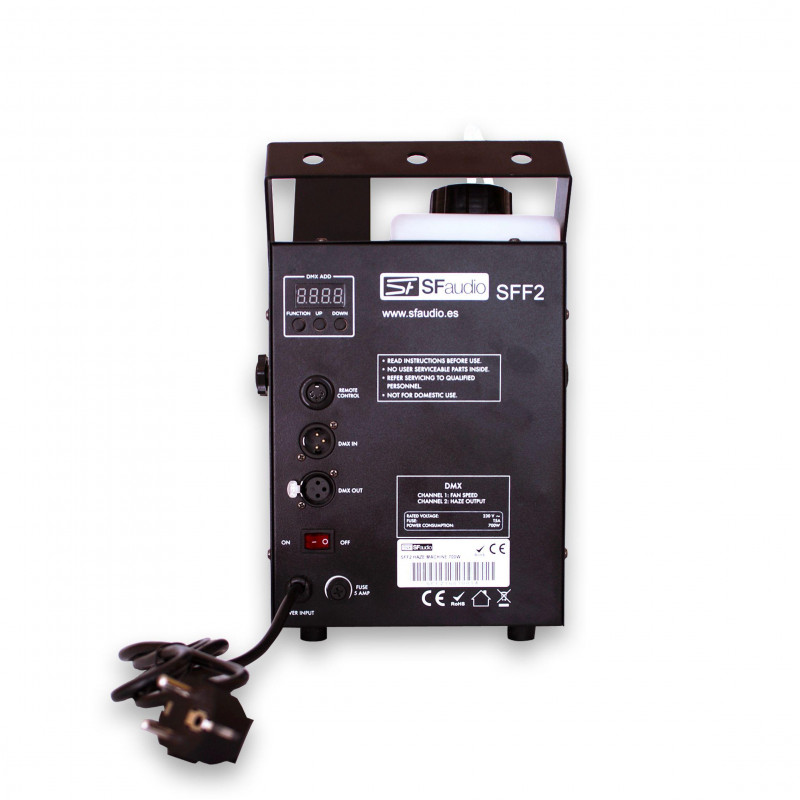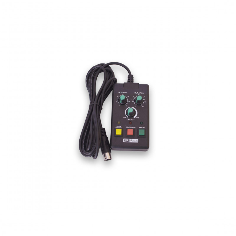 Além de seu novo controlador possui um inovador controle DMX com o qual podemos efetivamente controlar as funções de saída de fumaça e velocidade da turbina de ar.
