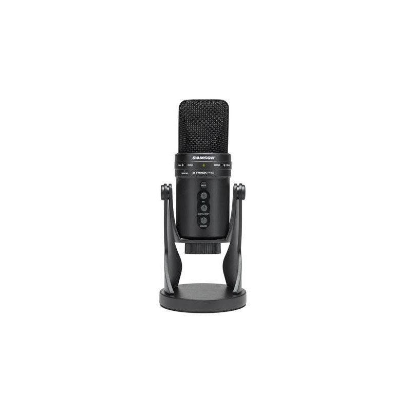 MICROFONE CONDENSADOR DE DIAFRAGMA GRANDE Microfone condensador USB e interface de áudio. Cápsula condensadora dupla de 1' (25 mm). Padrões polares: Omnidirecional, cardióide e bidirecional. Resolução de 24 bits, 96kHz. Entrada de ¼” para conexão de instrumentos ou dispositivos com saída de linha. Possibilidade de gravar voz e instrumento ao mesmo tempo. 2 faixas simultâneas. Saída de fone de ouvido de 1/8" com controle de volume. Controle de volume independente para microfone, instrumento e fones de ouvido. Botão Mestre Mudo. Dispositivo plug-and-play, sem necessidade de drivers. Base muito estável para uso em desktop. Ideal para podcasting, streaming e gravação de vocais/instrumentos