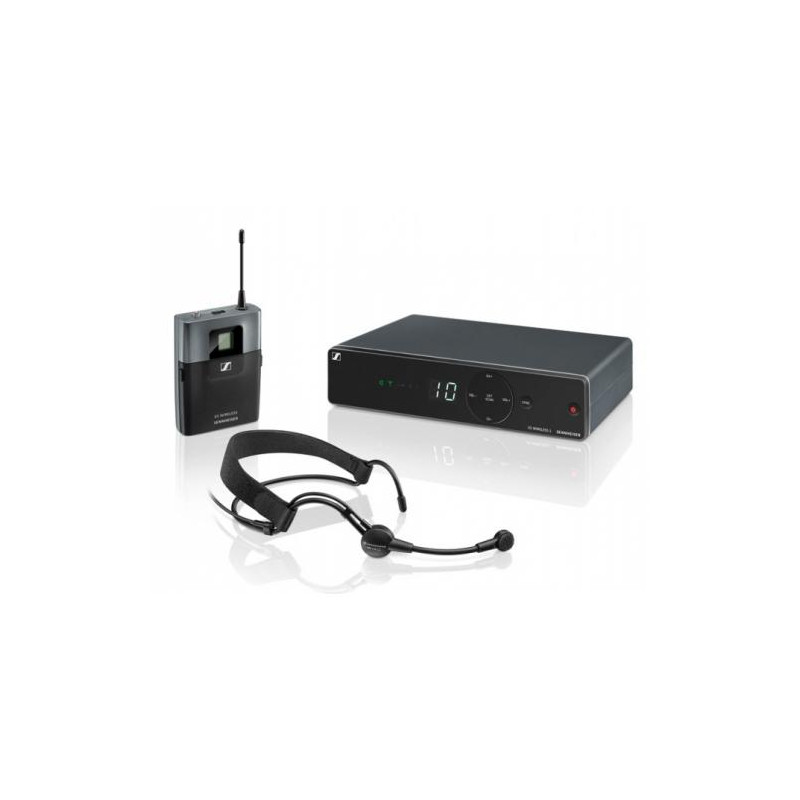 Sennheiser XSW 1-ME3 Set Diadema para cantantes y presentadores comupuesto de un transmisor Petaca y microfono de Diadema ME3 y receptor estacionario.