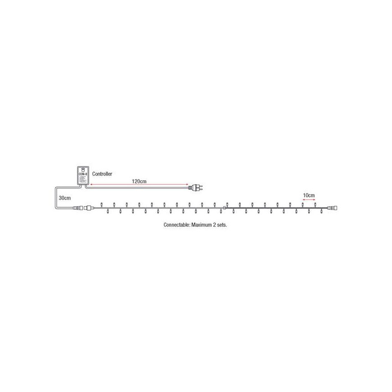 A luz LED Twinkle é um efeito acessível e decorativo que é muito adequado para decoração sazonal, bem como para iluminações em jardins, árvores e terraços. A luz LED Twinkle está disponível em 2 tamanhos: 10m e 20m. Ambas as versões são entregues completas com controlador e cabo de alimentação. Máximo de 2 conjuntos podem ser conectados juntos em 1 controlador. O Controlador possui 8 programas integrados diferentes que podem ser selecionados