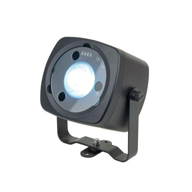 O Event Dot 15 é um dispositivo elétrico a bateria compacto, mas extremamente versátil. Equipado com uma óptica de 15W RGBW e 8 °, projeta um feixe forte e forte. Para ser mais versátil, estão incluídos dois difusores adicionais (15 ° e 30 °) e um difusor de domo. O Event Dot 15 pode ser montado em várias posições devido às várias opções de montagem. Ele vem de fábrica com um suporte de montagem livre, possui um ímã embutido para facilitar a montagem em objetos de metal, possui um ajustador de inclinação para ajustar a viga quando posicionado no chão e, por último, mas não menos importante, pode ser montado com Velcro devido no slot na parte inferior do aparelho.