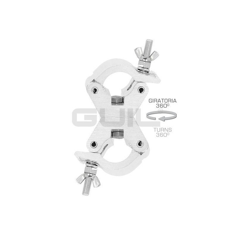 Abrazadera doble giratoria (360º) reforzada de aluminio.