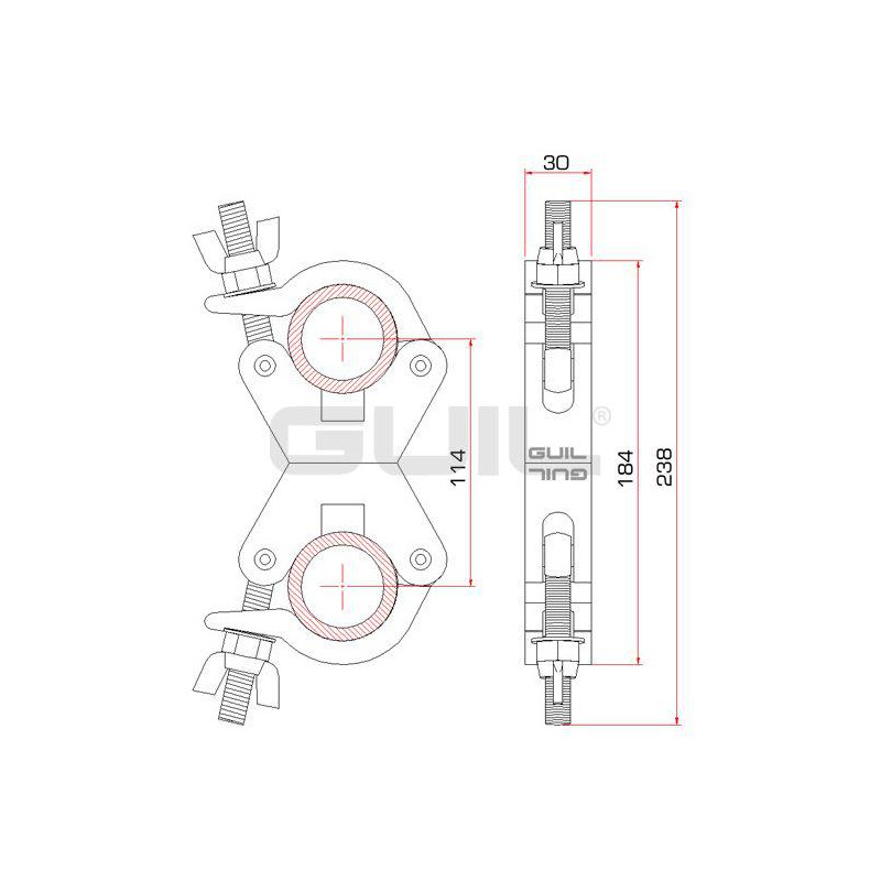 Su gran versatilidad nos permite una firme fijación de dos tubos en múltiples posiciones (tubos adyacentes, perpendiculares, paralelos, etc).