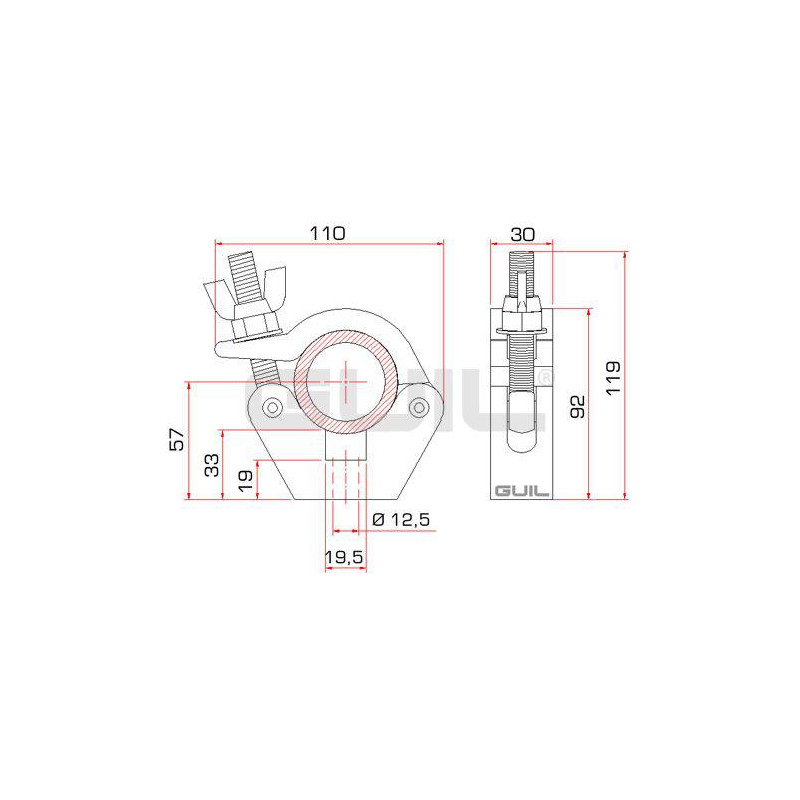 Abrazadera polivalente, se utiliza en múltiples sectores (construcción, espectáculo, etc).